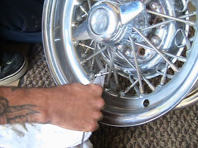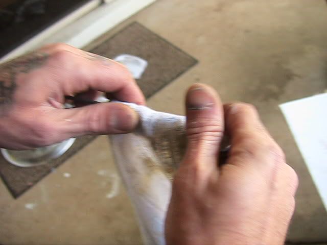 Now to buff. I wrapped the diaper around the brushes, the bristles hold it pretty good. Makes for a nice little tool to hit all those hard to reach places. Start flossing.